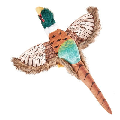De Fofos Fazant Pluche 45 X 9 X 5 cm hondenspeelgoed is een flexibel, pluche hondenknuffel met verschillende texturen stof en pluche. Een combinatie waardoor deze fazant een heel interessant knuffel- en speelmaatje is voor jouw hond. De fazant is gemaakt van verschillende structuren stof waardoor hij zeer aantrekkelijk is voor jouw viervoeter. Door de langgerekte vorm en flapperende, slappe vleugels is hij naast om te knuffelen om bijzonder geschikt om mee te spelen en te schudden.