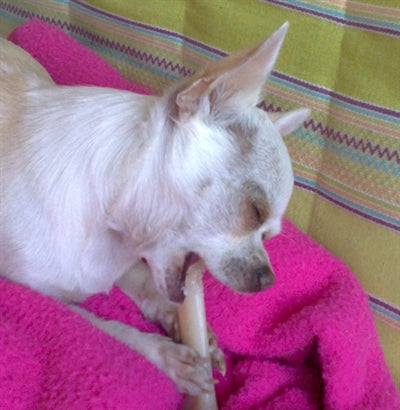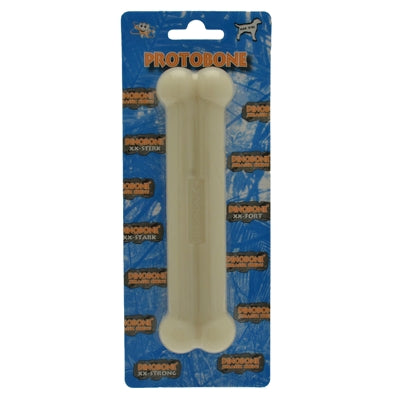 Dinobone voor harde bijters. Dit bot is zo hard dat hij het bot niet kapot kan krijgen. Zorg altijd dat je een bot kiest voor je hond dat hij maar net in zijn bek kan dragen (liever te groot dan te klein). Het bot is geschikt voor honden tot 15 kg lichaamsgewicht en zorgt voor schone tanden en een frisse adem.