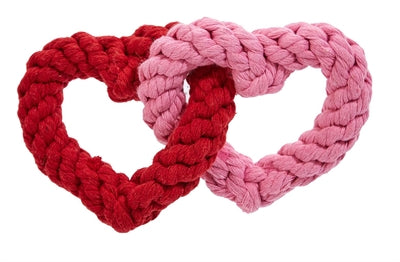 Deze twee hartjes flostouwen zijn met elkaar verbonden, waardoor ze ook goed gebruikt kunnen worden voor een leuk trekspelletje!